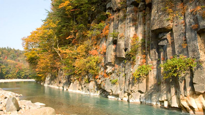 The gorge which stretches between the Hachimantai Hot Springs and Matsukawa Hot Spring is one of the best spots in Iwate to enjoy the fall foliage. Many people go for a drive along the scenic Aspite Line and Jukai Line. The contrast between the warm fall colors and the bluish white river, as well as between the sharp rocks and soft leaves, is simply breathtaking. The best time to view autumn leaves is usually from the first to the end of October. You can also catch fish such as landlocked salmon. After a walk along the river, relax your muscles in one of the hot springs.